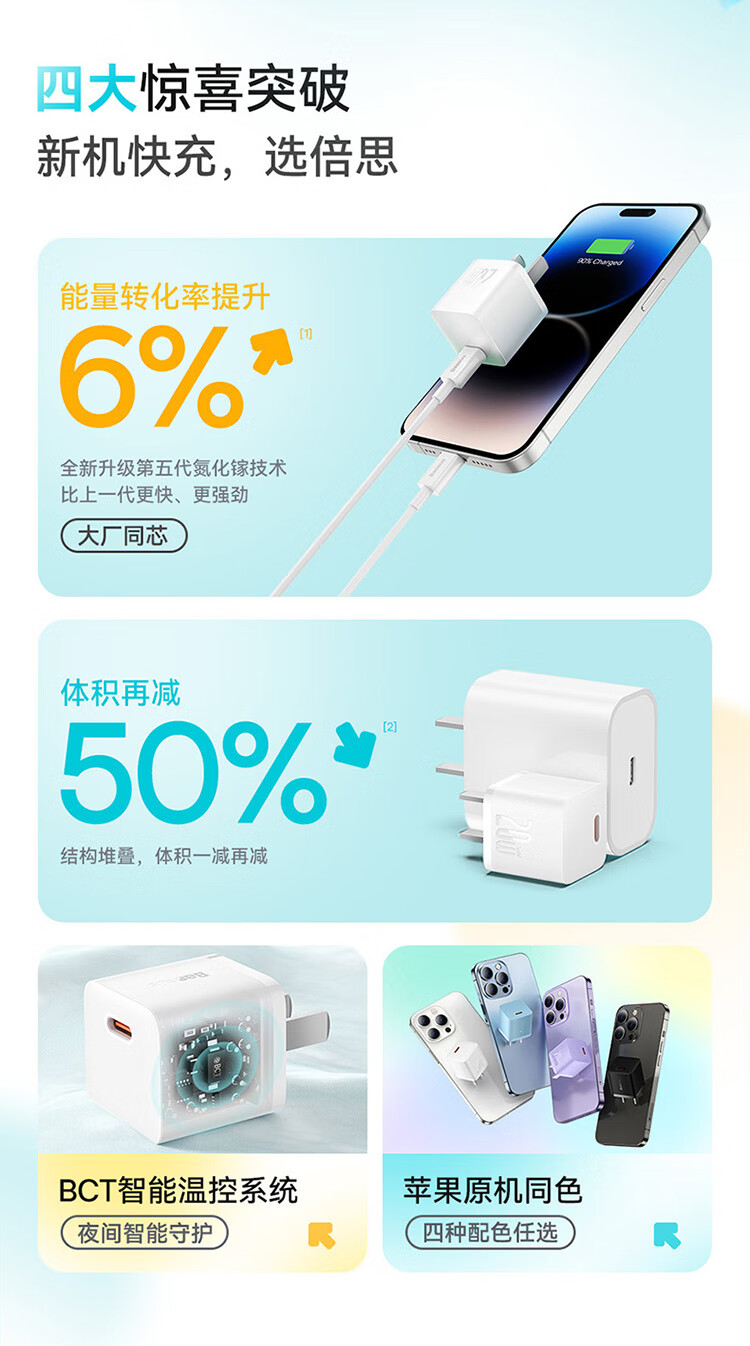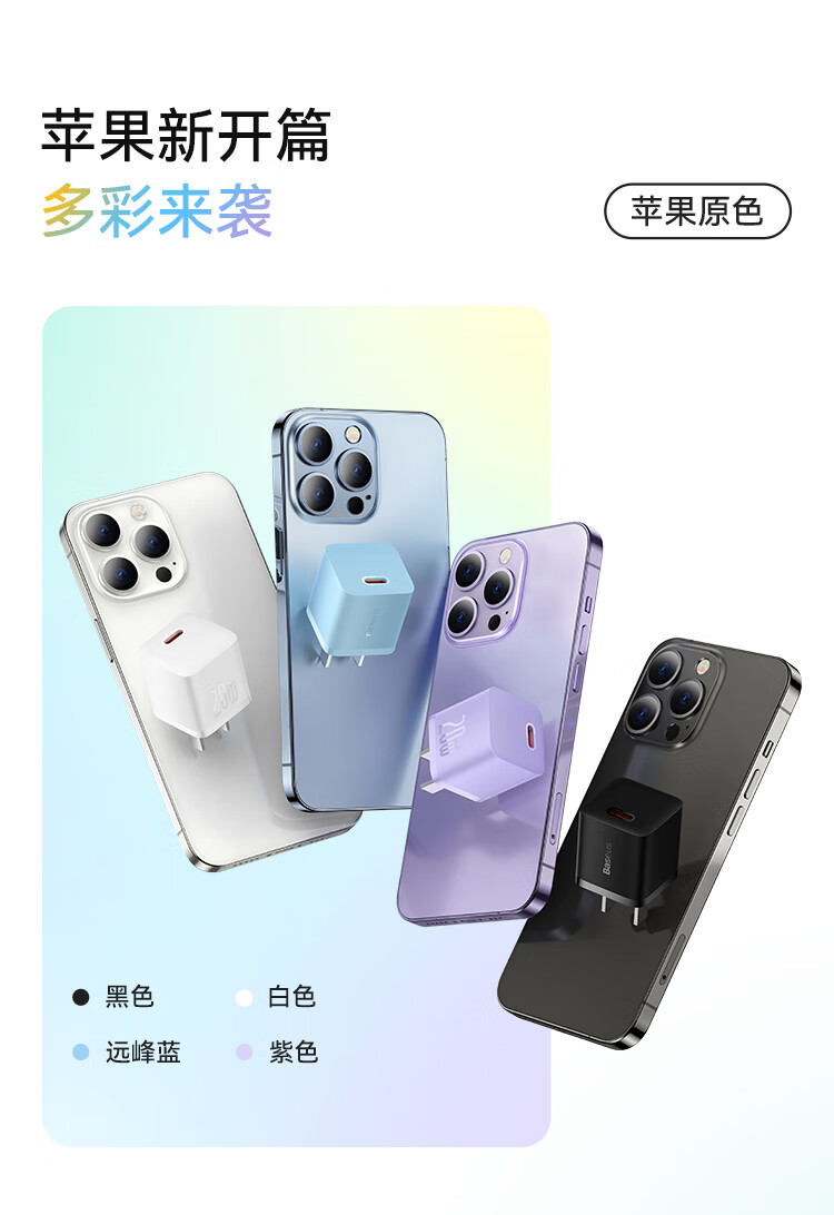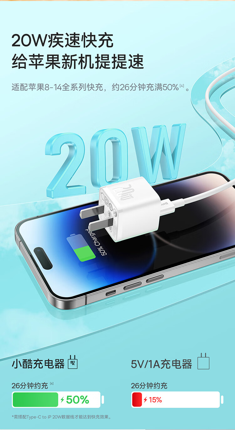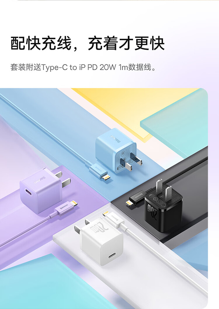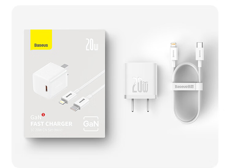 倍思 苹果充电器氮化镓快充套装PD20W充电头适用于iPhone14ProMax/13/12手机Type-C数据线iPad插头 CCGAN20C5-M远峰蓝 SKU:SXT206226