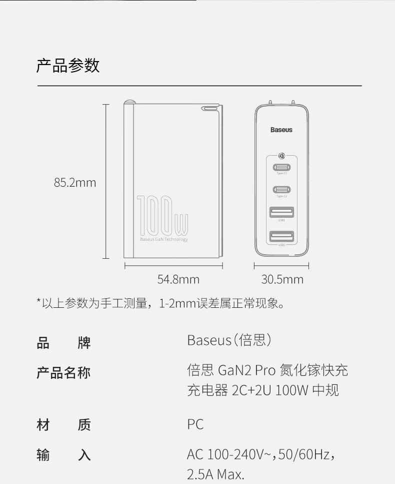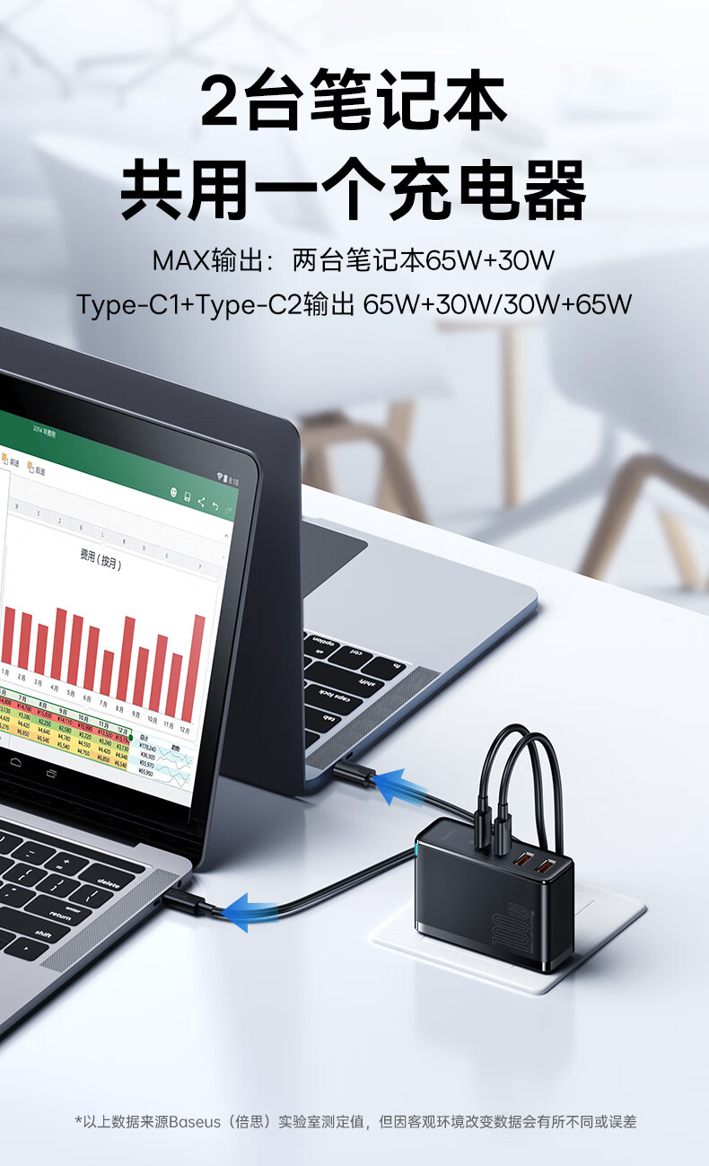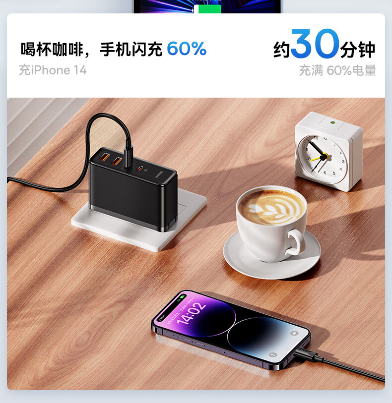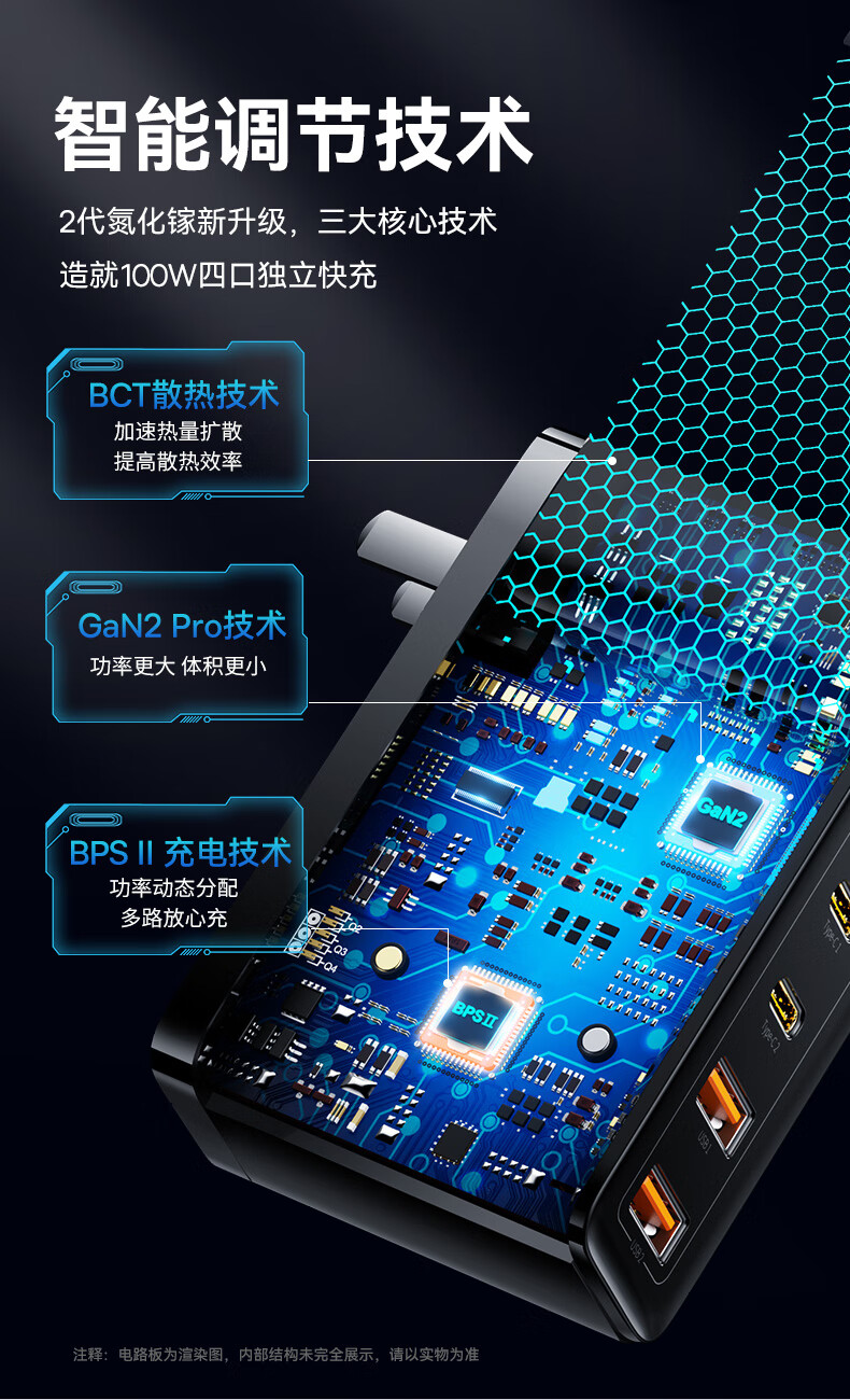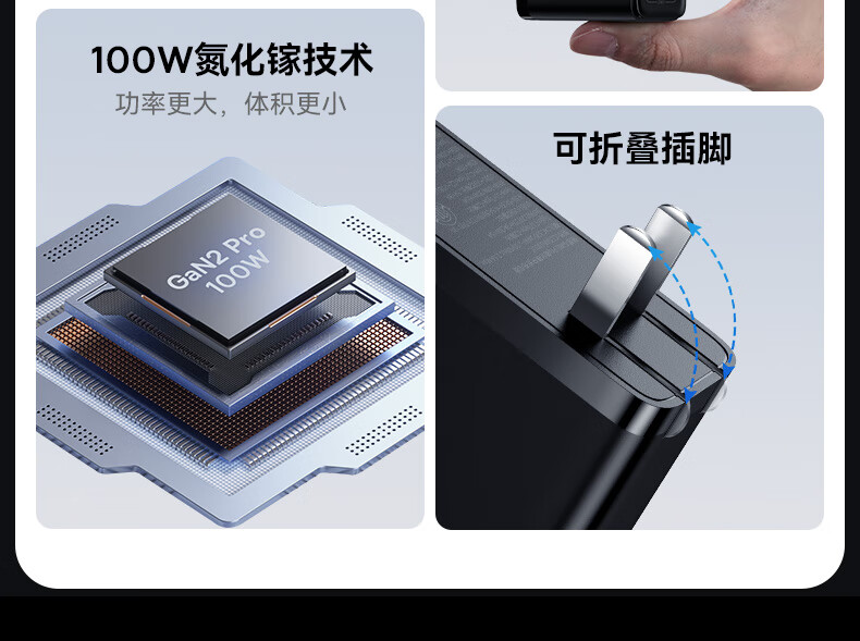 倍思 100W氮化镓充电器套装 兼容PD65W四口快充 适用苹果iPhone14/13华为手机Macbook联想笔记本电脑 CCGAN100UC黑 SKU:SXT206269