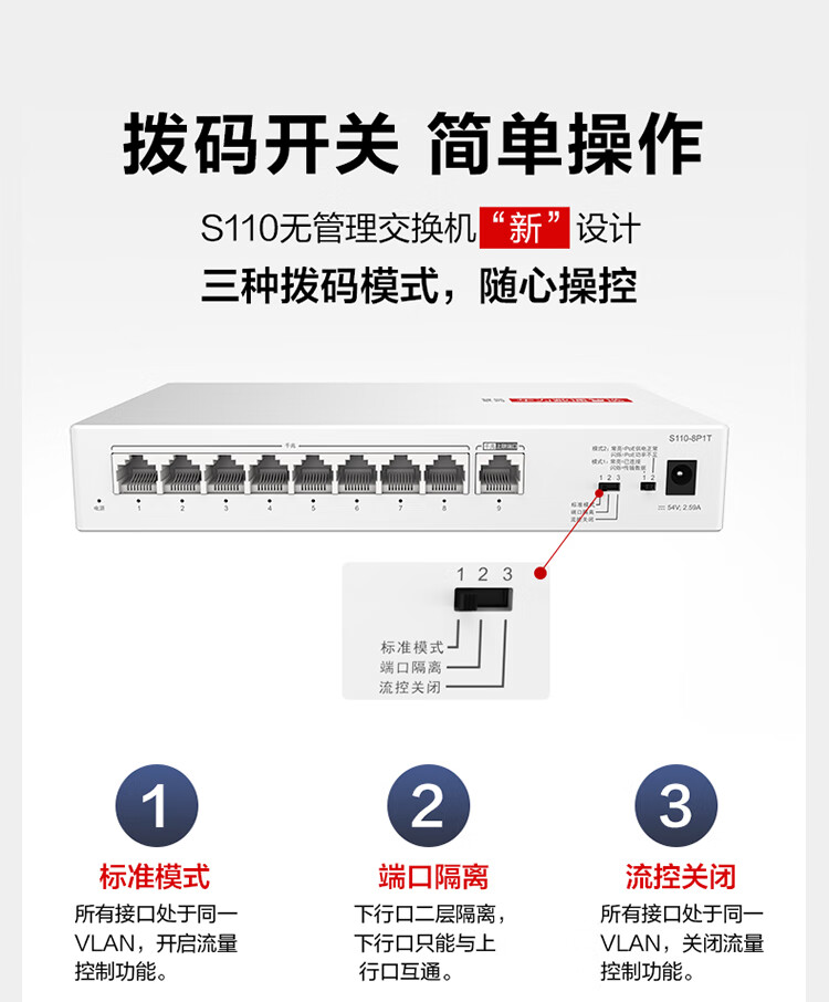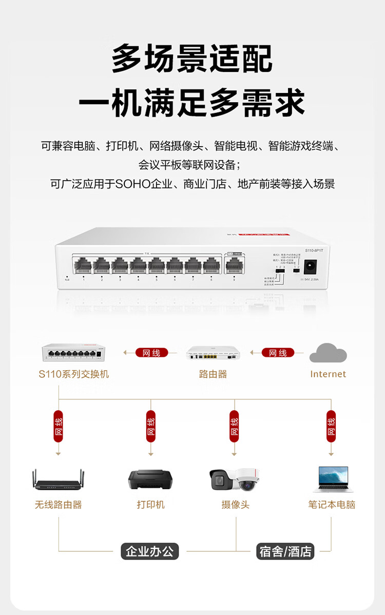 华为数通智选8口满供千兆POE交换机S110-8P1T 8口千兆电+1上行电口企业级POE网线分线器集线分流器 SKU:SXT207338
