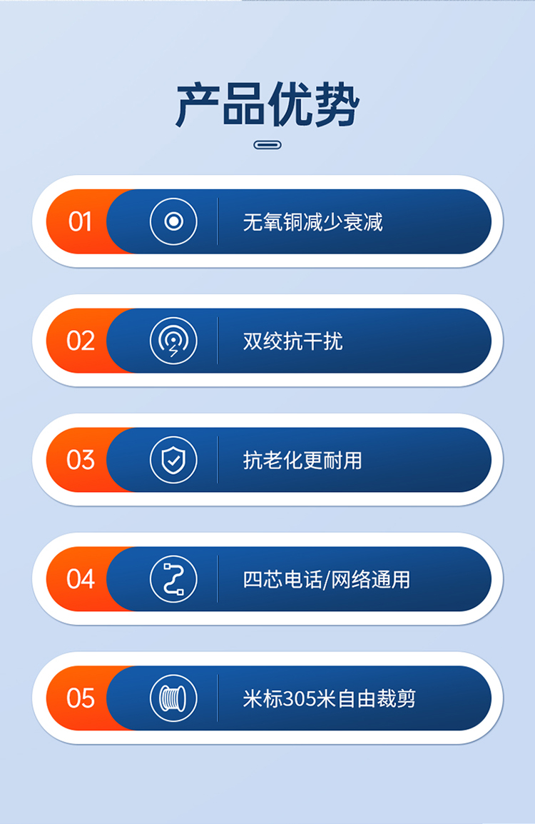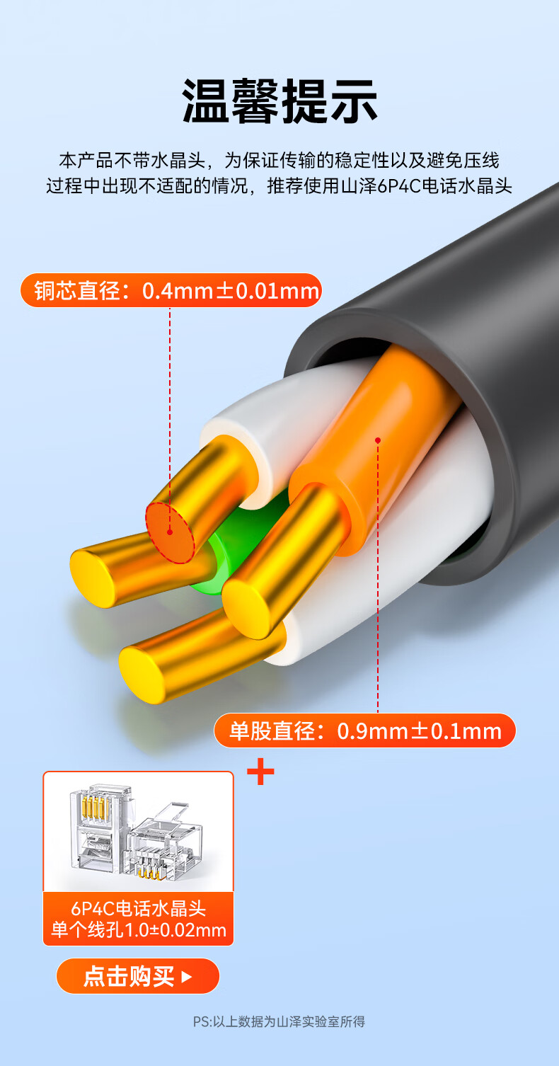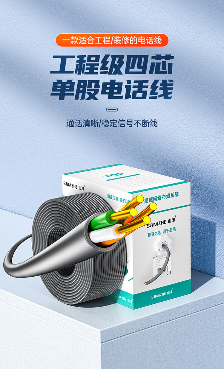 山泽(SAMZHE)DWX305 原装电话线【普通版0.4线芯】两对双绞四芯网线电话线 灰色305米 SKU:SXT208150