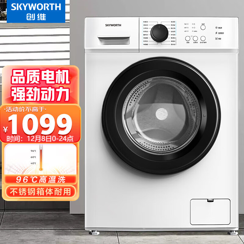 创维(SKYWORTH) 洗衣机8公斤滚筒洗衣机家用全自动 96℃高温洗涤超薄嵌入XQG80-B09M XQG80-B09M白 TJHX02201348305274SKU:SXT10036498