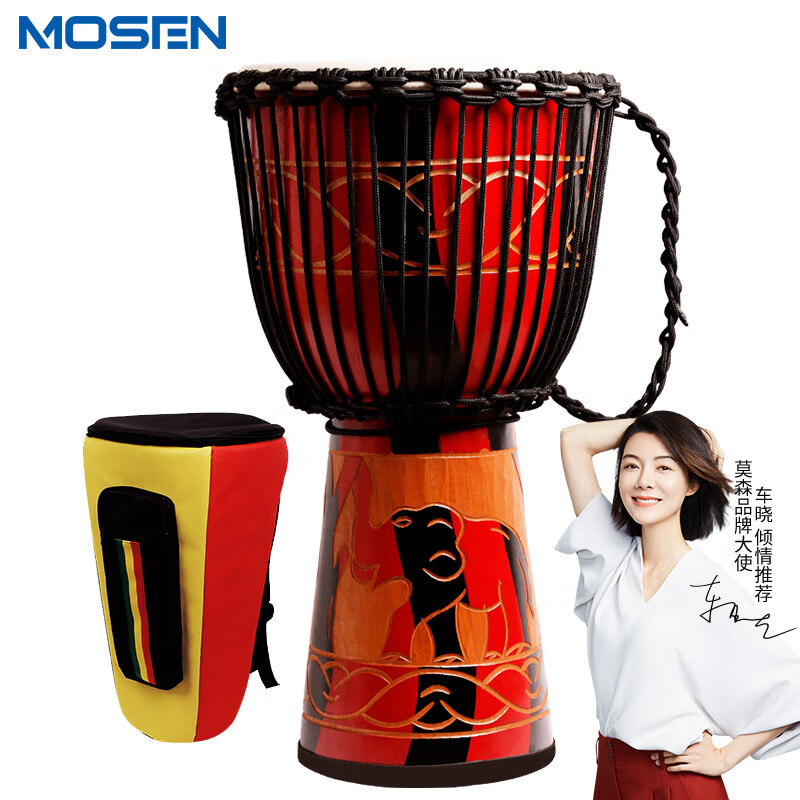 莫森(MOSEN)12英寸彩绘非洲鼓 纯羊皮印尼桃花芯木专业手鼓 免调音红色雕像SKU:SXT10055720