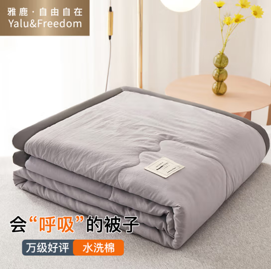 雅鹿 自由自在 水洗棉被子空调被夏季夏凉被 被芯被褥 单人双人太空春秋被儿童夏天薄被子 150*200cm浅灰 SKU:SXT10092311