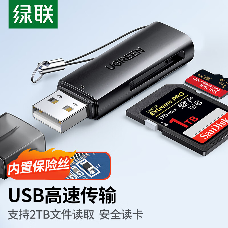 绿联 USB高速读卡器 SD/TF多功能合一电脑手机iPad读卡器 支持单反相机行车记录仪安防监控手机内存卡 SKU:SXT10117515