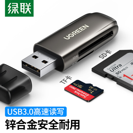 绿联 USB3.0高速读卡器 锌合金多功能读卡器 80552 货号:WY SKU:SXT10141472