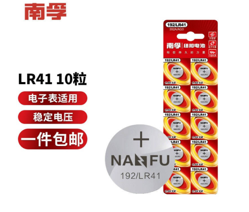 南孚192/LR41 纽扣电池(10粒/卡) SKU:SXT10220838