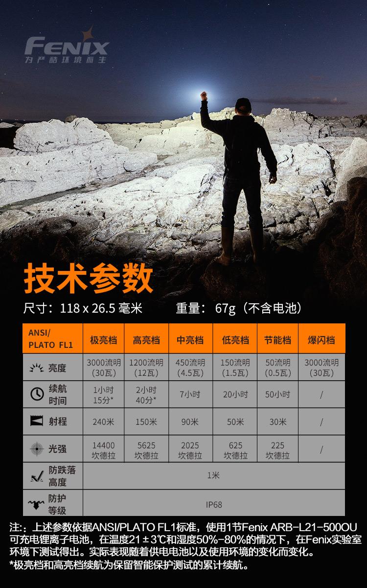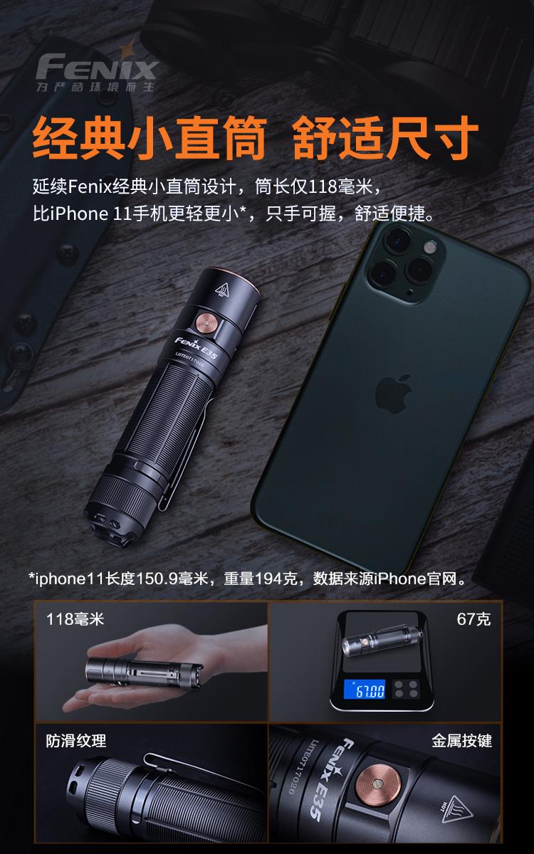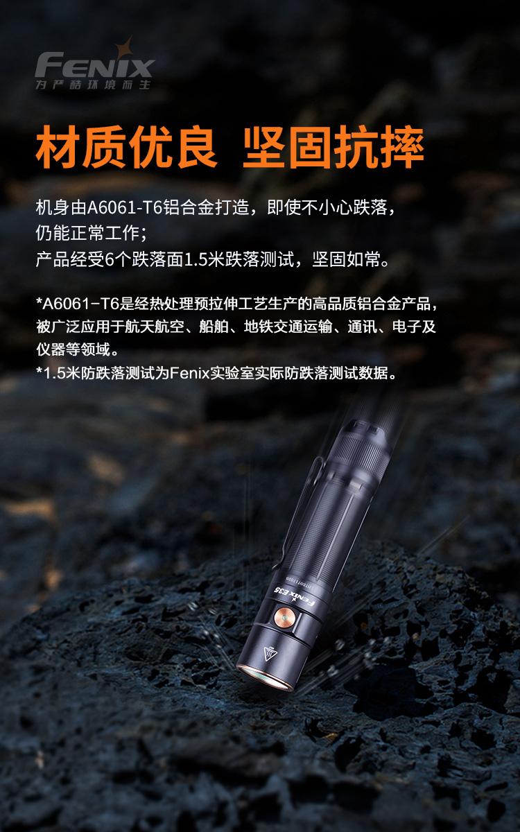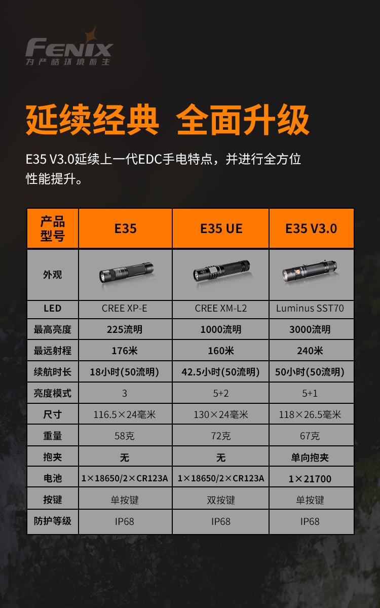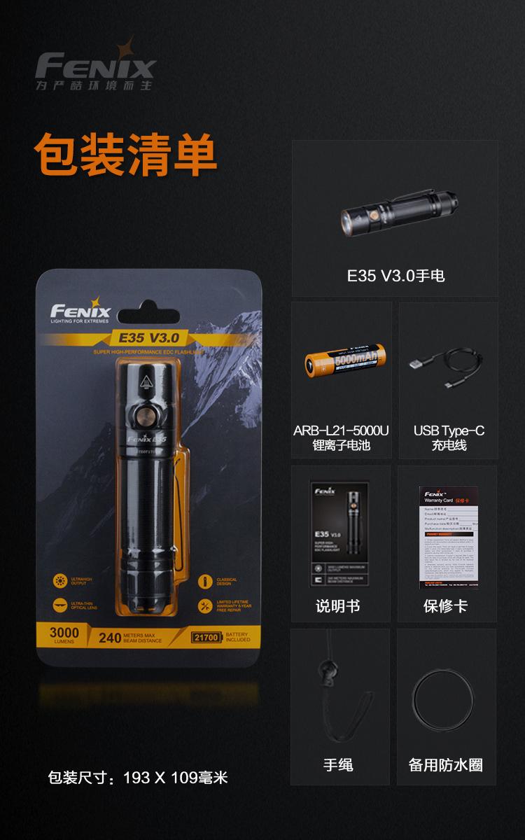 菲尼克斯FENIX手电筒强光远射户外手电经典小直型手电户外家用照明停电应急灯超亮 E35 V3.0 (3000流明)