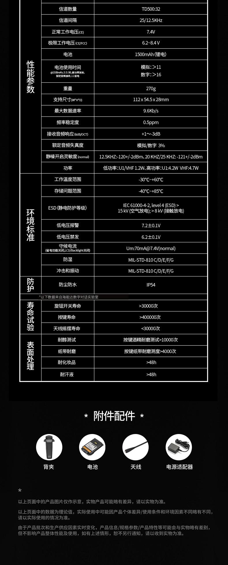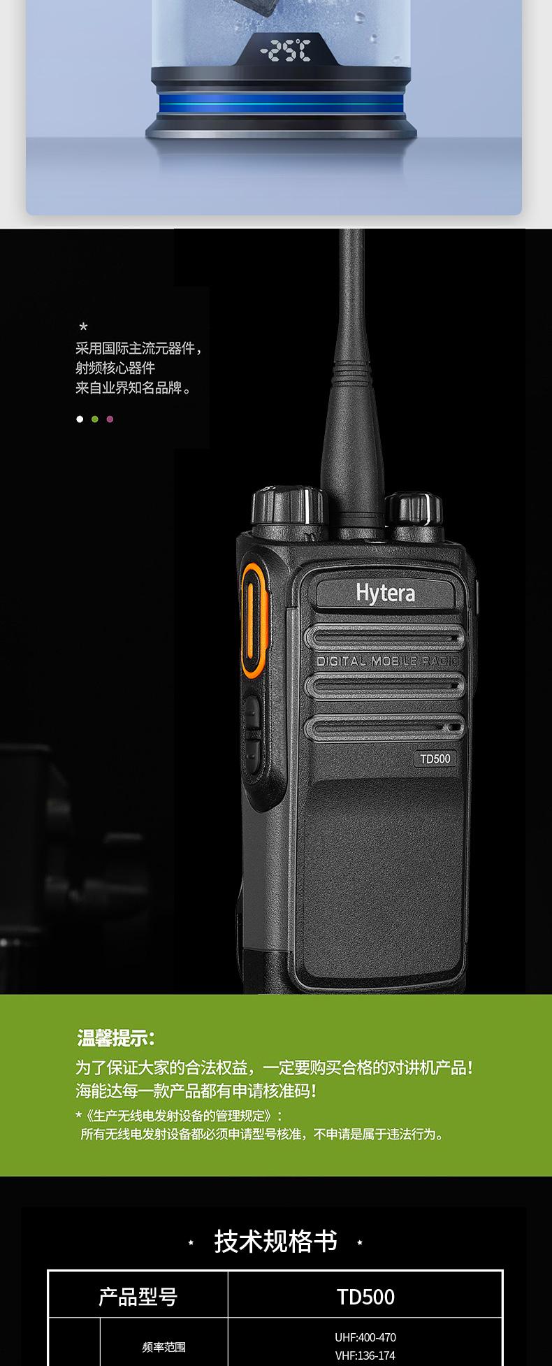海能达(Hytera)TD500 数字对讲机 远距离专业商用语音加密大功率手持无线对讲电台 SKU:SXT202697